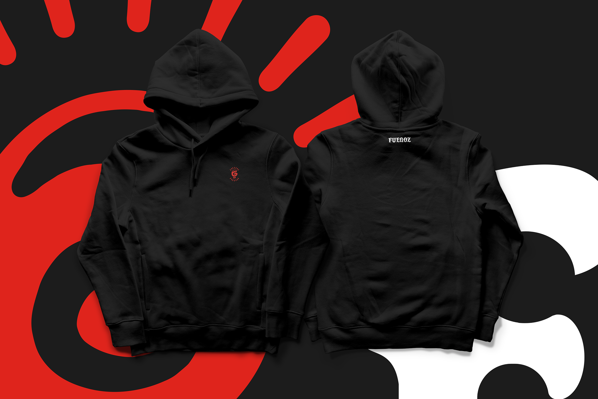 Fuegoz est une nouvelle entreprise québécoise spécialisée dans les sauces et condiments piquants pour les occasions spéciales de sortir le BBQ. Toutes les sauces sont produites à partir de piments de qualité de façon abondante afin de se positionner comme une marque premium. L'objectif était de mettre de l'avant le côté piquant en sortant des clichés; d'où le boxeur et son gant étant au centre de l'univers de marque.